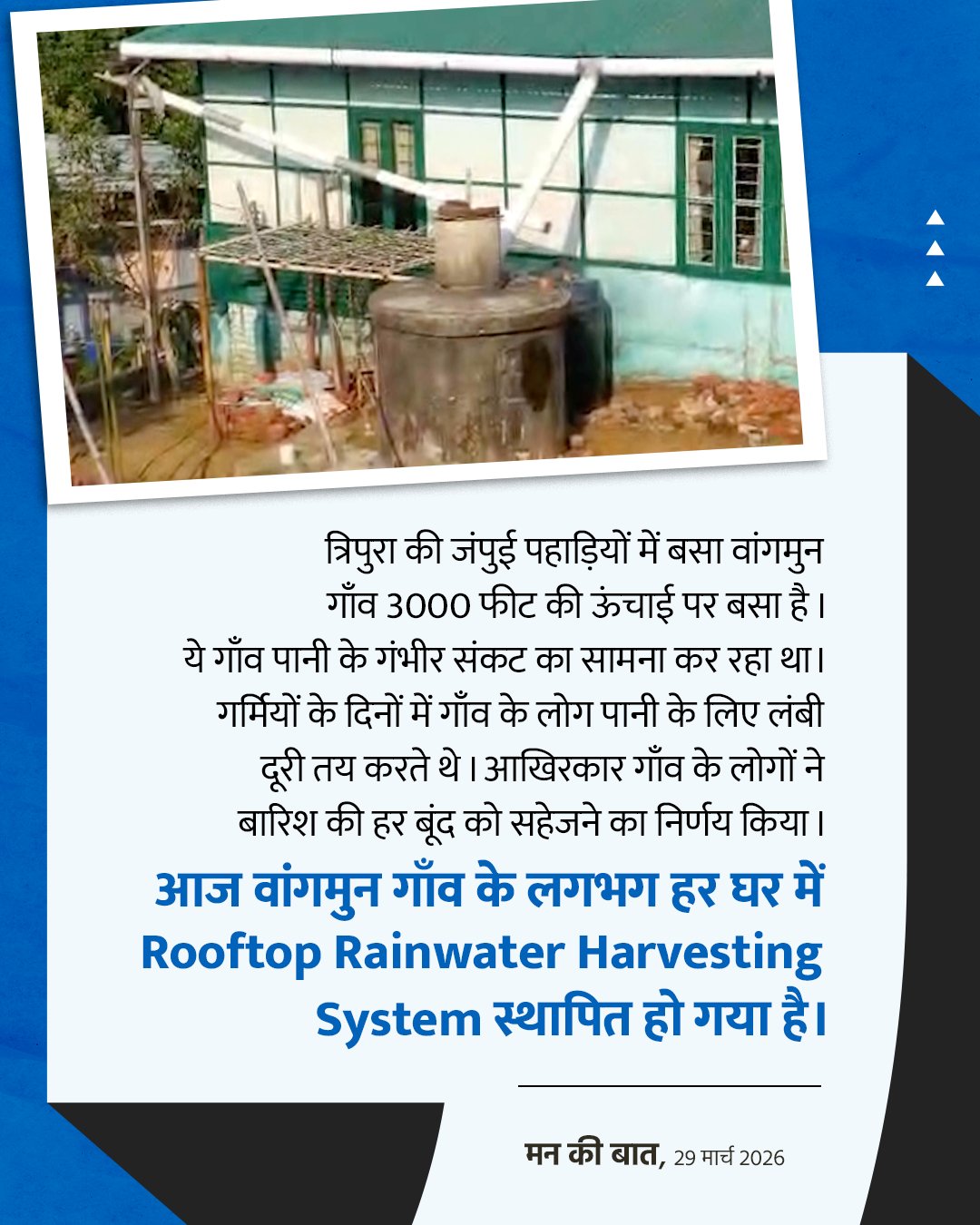 नई दिल्ली। प्रधानमंत्री नरेन्द्र मोदी ने रविवार को अपने मासिक रेडियो कार्यक्रम में कहा कि गत पिछले 11 वर्षों में ‘जल संचय अभियान’ के तहत देश भर में लगभग 50 लाख कृत्रिम जल संग्रह संरचनाएं बनाई गई हैं और ‘अमृत सरोवर अभियान’ के तहत 70,000 झीलें निर्मित की गई हैं। प्रधानमंत्री ने कहा कि देश के कई हिस्सों में गर्मी का मौसम शुरू होने के साथ ही जल संरक्षण के प्रति अपनी प्रतिबद्धता को दोहराने का समय आ गया है। उन्होंने कहा कि पिछले 11 वर्षों में ‘जल संचय अभियान’ ने लोगों के बीच काफी जागरूकता पैदा की है, जिसके तहत देश भर में लगभग 50 लाख कृत्रिम जल संग्रह संरचनाएं बनाई गई हैं। मोदी ने कहा, ”मुझे यह देखकर खुशी हो रही है कि जल संकट से निपटने के लिए अब हर गांव में सामुदायिक स्तर पर प्रयास किए जा रहे हैं। कुछ जगहों पर पुराने तालाबों की सफाई की जा रही है, अन्य जगहों पर वर्षा जल के संरक्षण के प्रयास किए जा रहे हैं।” प्रधानमंत्री ने कहा कि अमृत सरोवर अभियान के तहत देश भर में लगभग 70,000 ‘अमृत सरोवर’ (झीलें) बनाए गए हैं। उन्होंने कहा, ”वर्षा ऋतु के आगमन से पहले ही इन झीलों की सफाई शुरू हो चुकी है। आज मैं आपके साथ कुछ प्रेरणादायक उदाहरण भी साझा करना चाहूंगा। ये उदाहरण दर्शाते हैं कि जनभागीदारी से जल संरक्षण कितना व्यापक हो सकता है।” प्रधानमंत्री ने छत्तीसगढ़ के कोरिया जिले का उदाहरण दिया, जहां किसानों ने एक सरल लेकिन कारगर उपाय अपनाया। उन्होंने अपने खेतों में छोटे-छोटे जल पुनर्भरण तालाब और सोखने वाले गड्ढे बनाए, जिससे बारिश का पानी खेतों में ही जमा रहता है और धीरे-धीरे जमीन में रिस जाता है। इस क्षेत्र के 1,200 से अधिक किसानों ने इस पद्धति को अपनाया है और गांव के भूजल स्तर में उल्लेखनीय सुधार हुआ है। उन्होंने कहा कि तेलंगाना के मंचरियाल जिले के मुधिगुंटा गांव में लोग जल समस्या के समाधान के लिए एकजुट हुए हैं और 400 परिवारों ने अपने घरों में जल संचयन के लिए गड्ढे बनाए हैं तथा जल संरक्षण के लिए एक जन आंदोलन शुरू किया है। मोदी ने कहा कि इससे गांव के भूजल स्तर में सुधार हुआ है और प्रदूषित पानी से होने वाली बीमारियों में काफी कमी आई है।